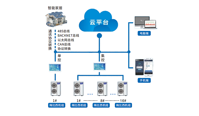 梅比西整体户式家庭多联供系统,不只是一个设备,更是一位“隐形的守护者”。它通过智慧“云平台”将实时监测、数据分析、远程控制与开放兼容融为一体,让每一次运行都安心可靠,让每一位用户都感受到智慧科技带来的舒适与便捷。